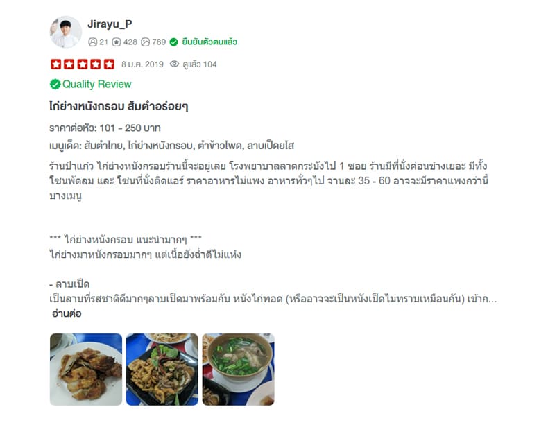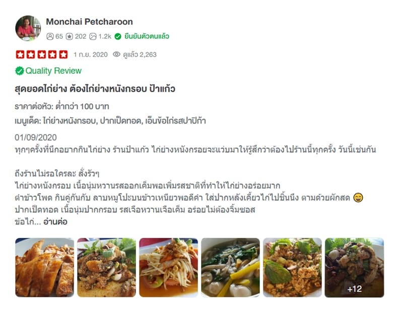 แก้วเป็นชาวยโสธรเข้ามาทำงานในกรุงเทพเริ่มจากการขายของเล็กๆ น้อยๆ จากนั้นแก้วเข้าสู่วงการส้มตำเต็มตัวจากหาบเร่ริมถนนสู่ขวัญใจชาวลาดกระบัง ไม่มีใครไม่รู้จักแก้ว แม่ค้าส้มตำหาบเร่เเสนอร่อย แต่ความเลื่องชื่อไม่หยุดแค่นั้น แก้วได้ใช้เวลาทุ่มเท คิดค้นหาวิธีที่จะทำให้ไก่ของแก้วโดดเด่นอร่อยติดปาก หาคนเทียบได้ยาก จนได้ไก่ย่างหนังกรอบ เนื้อนุ่ม กลิ่นหอมจากเตาเป็นเอกลักษณ์ตำนานเล่าขานของป้าแก้วไก่ย่างหนังกรอบจากรุ่นสู่รุ่น